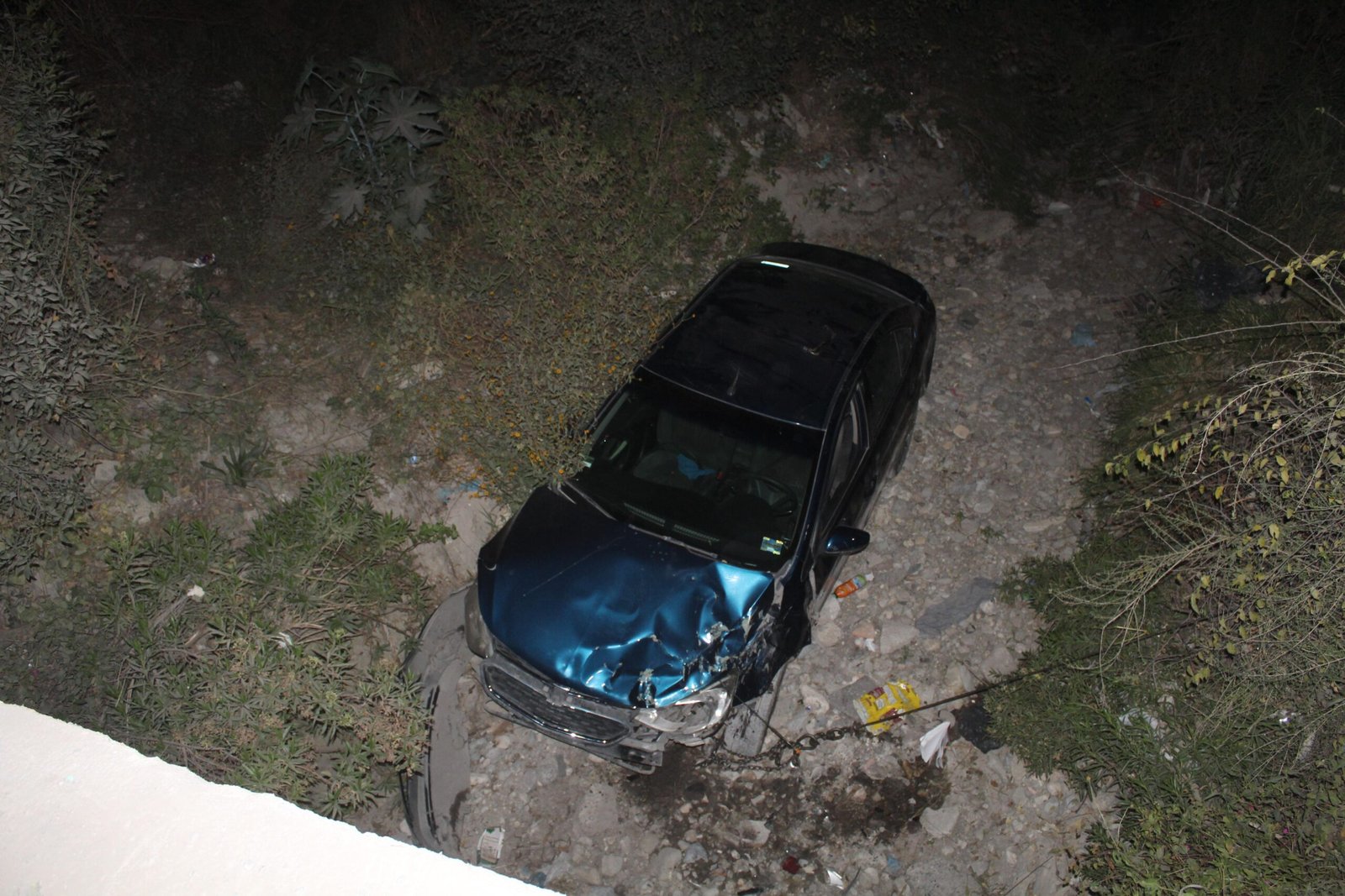 El vehículo impactó el costado izquierdo del Onix, lo que provocó que saliera del camino y quedara al fondo de un barranco.