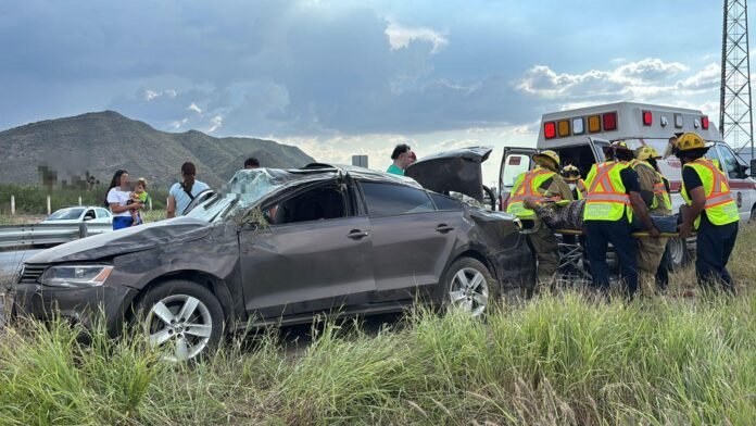 Un aparatoso accidente se registró la tarde de este domingo sobre la carretera Saltillo–Torreón, a la altura del kilómetro 16, donde un vehículo Volkswagen Jetta terminó volcado a un costado de la vía.