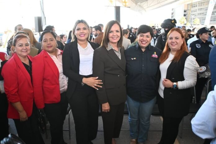 “Hoy estuvimos en Torreón acompañando al gobernador Manolo Jiménez Salinas en la entrega de nuevas patrullas, armamento y equipamiento táctico, herramientas que fortalecen las labores de seguridad en todo el estado”, señaló la alcaldesa.